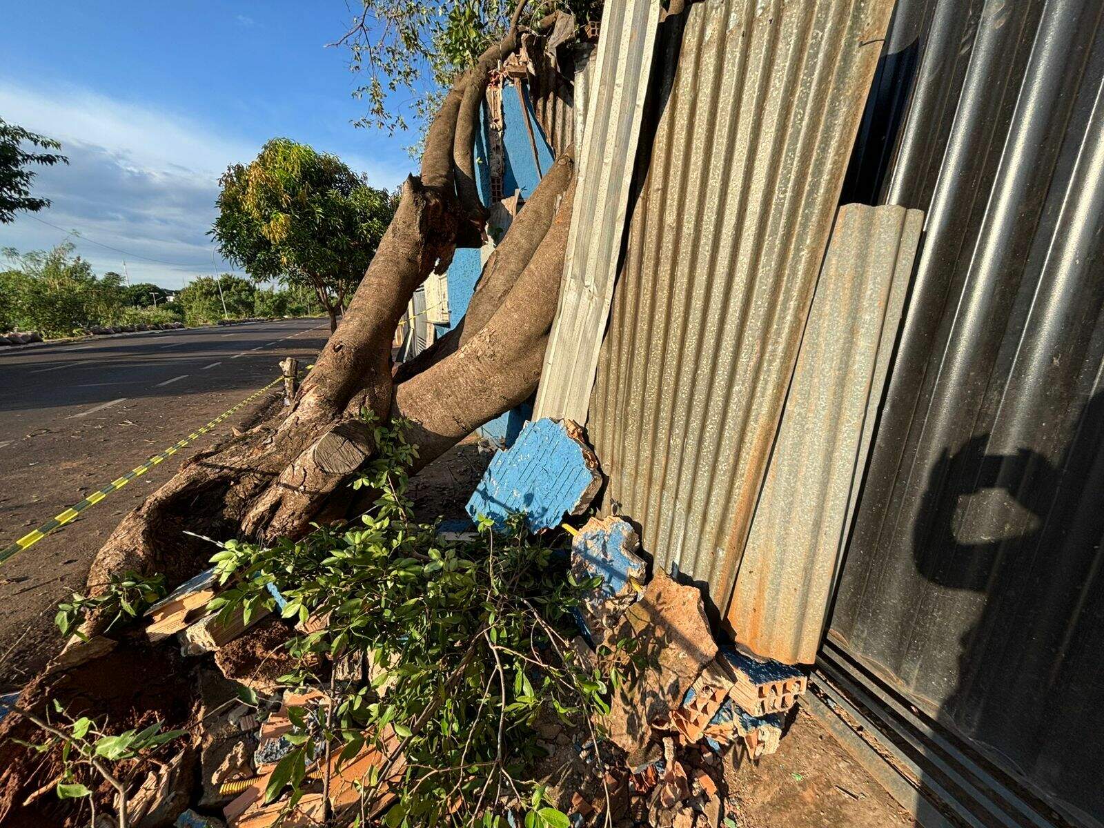 Um casal está preso dentro de casa desde a tarde de ontem (19), após um temporal derrubar uma árvore que ficava na calçada da Avenida Ernesto Geisel, em Campo Grande. Ela atingiu o muro e o portão, impedindo a entrada e saída da residência.