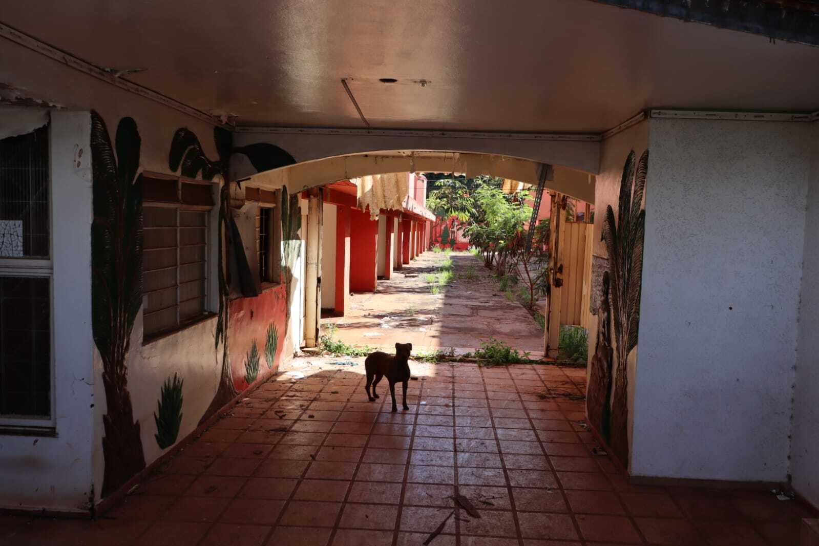 Na entrada do motel há um portão trancado com cadeado e a presença de um cachorro de grande porte, mas outros acessos apresentam sinais de arrombamento ou brechas, o que pode facilitar a entrada de pessoas. No momento da visita da reportagem, não foi observada movimentação no interior do imóvel além do animal.