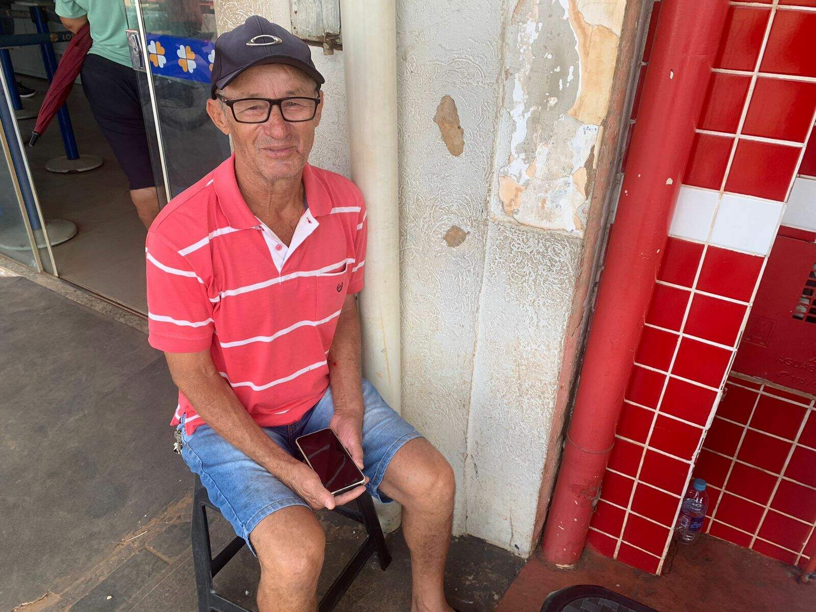 Amando sentado em frente à lotérica enquanto conversa com a reportagem. (Foto: Dayene Paz)