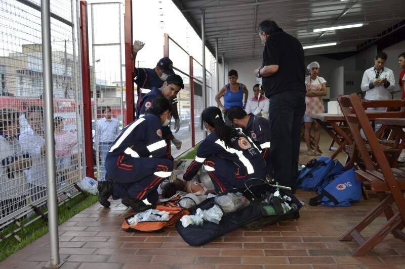 “Dei o copo, ela começou a tomar a água e caiu para trás desacordada, já sangrando a boca e o nariz”, conta Marcelo. Ele também diz que o atendimento médico demorou cerca de 20 minutos para chegar ao local. A ligação de emergência foi feita às 17h44.
