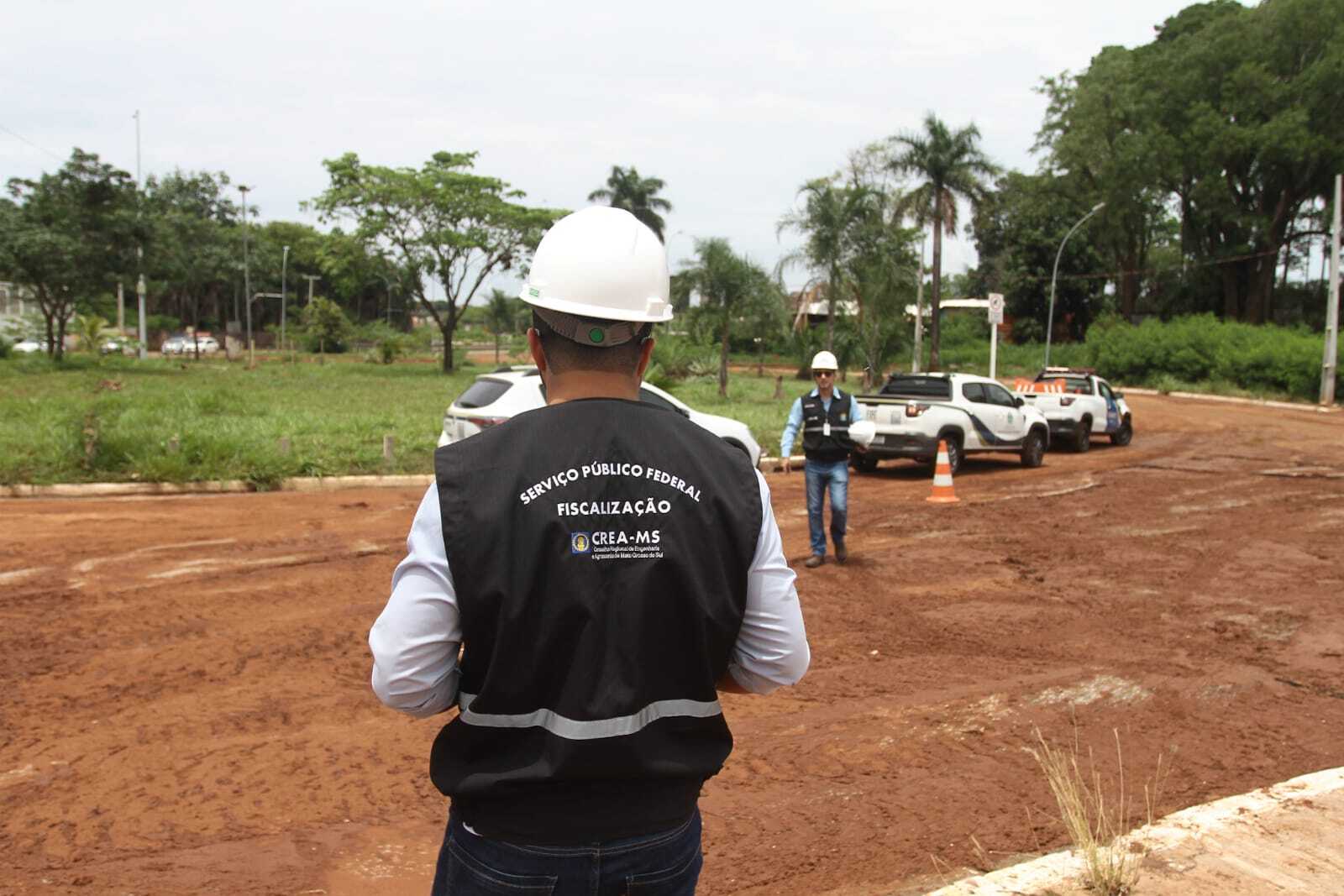 Membros do Conselho Regional de Engenharia durante fiscalização na rotatória da Avenida Rachid Neder (Foto: Marcos Maluf)