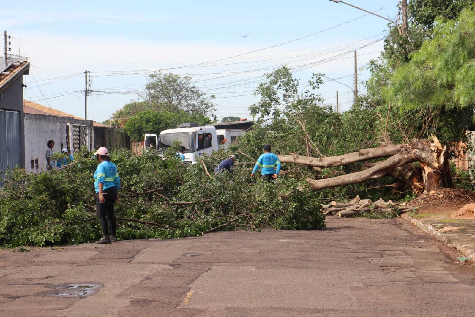 A árvore caiu durante tempestade que atingiu o Jardim Imá e outros bairros da Capital durante a tarde. De acordo com o Cemtec (Centro de Monitoramento do Tempo e do Clima), o acumulado de precipitação foi de 26 mm.