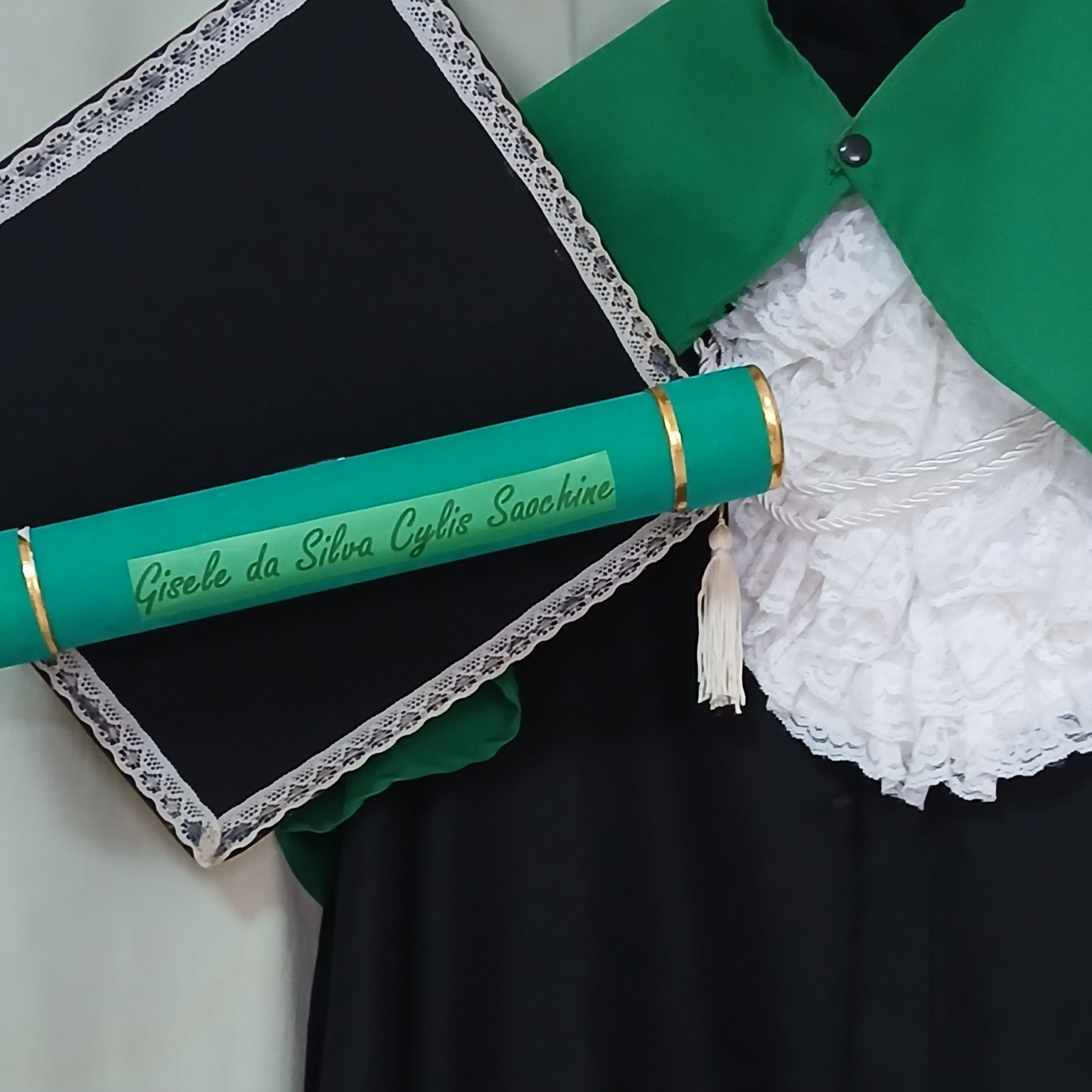 A homenagem se estendeu à família de Gisele. Durante a cerimônia, a mãe, a irmã e a filha receberam o canudo simbólico e um botão de rosa, representando a conquista que seria celebrada pela formanda. A beca que ela usaria também foi apresentada, como forma de lembrança.