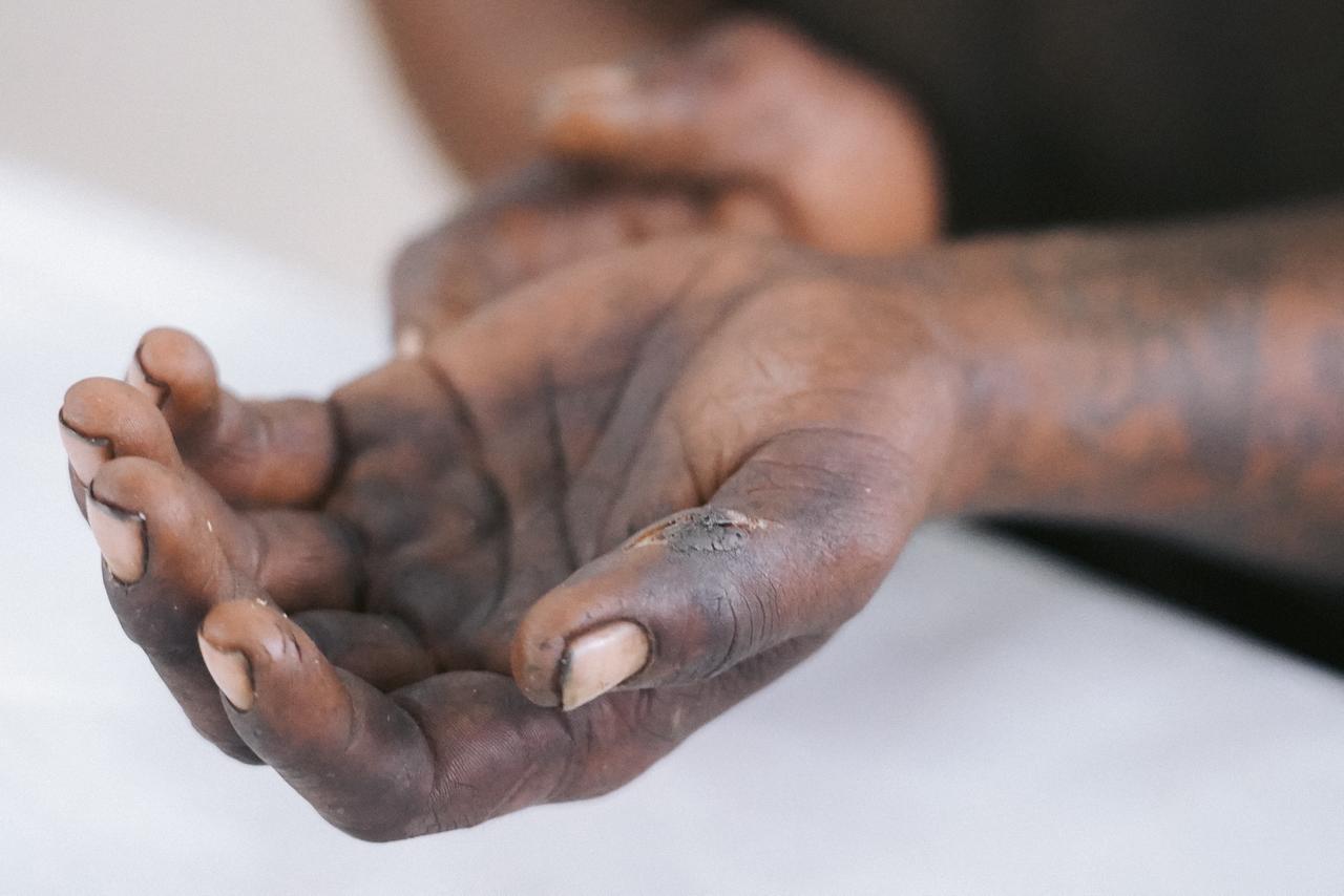 Jeferson mostra os ferimentos nas mãos, já que está há muito tempo na rua (Foto: Renan Kubota)