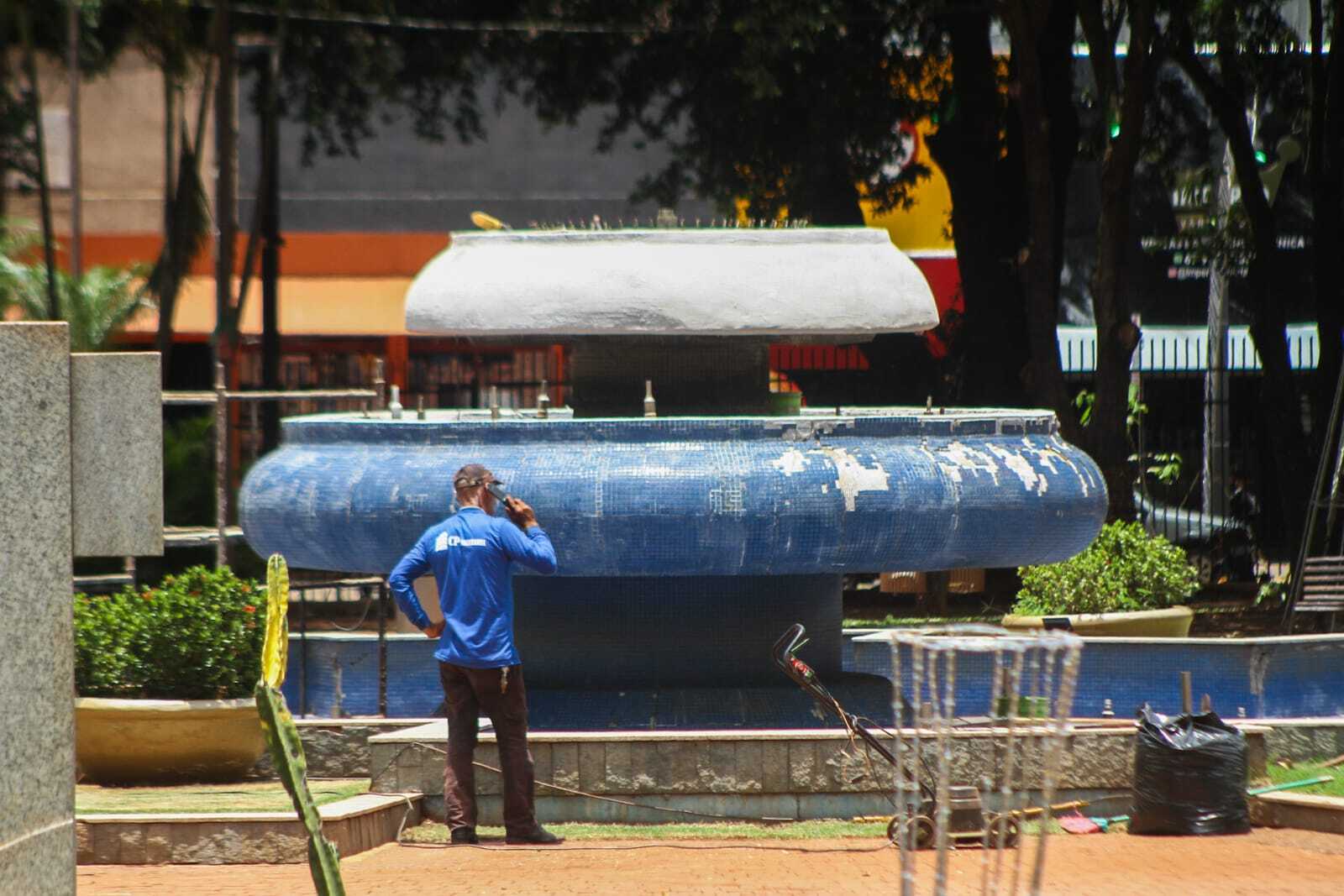 Sobre a reforma – As obras na praça tiveram início na quinta-feira (20), com reparos realizados no chafariz. A revitalização é feita pela Sisep (Secretaria Municipal de Infraestrutura e Serviços Públicos), em parceria com a Águas Guariroba e a Fundac (Fundação Municipal de Cultura), após a queda de pastilhas e o avanço do desgaste estrutural que expôs trechos de concreto.