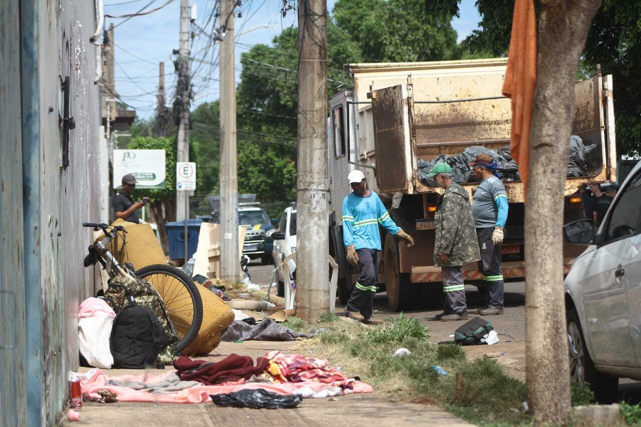 A ação, que contou com a presença de cães farejadores, também apreendeu drogas. Segundo as forças de segurança, a operação foi deflagrada após reclamações de furtos na região, de sujeira, urina e fezes espalhadas pelo entorno, além de colchões, roupas e papelões ocupando a via. Equipes da Sisep ( Secretaria Municipal de Infraestrutura e Serviços Públicos) usaram caminhão para fazer a limpeza da via.