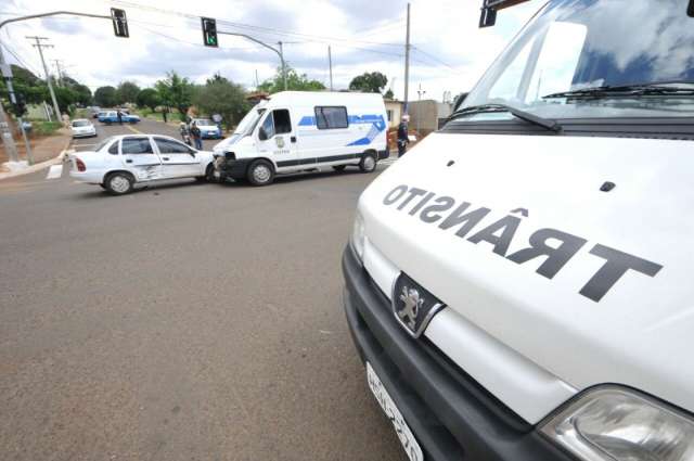 Colisão entre Biz e caminhonete deixa trânsito lento na Avenida Noroeste