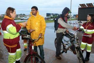 Ontem foram abordados62 ciclistas nos dois locais em que a ação foi realizada."Durante a abordagem. oferecemos, gratuitamente, adesivos refletivos de segurança para afixar nas bicicletas e os ciclistas que aceitam de bom grado que suas bicicletas fossem adesivadas na hora", diz Ademir Pereira, coordenador de Interação com o Cliente da CCR MSVia no trecho Centro da BR-163/MS.