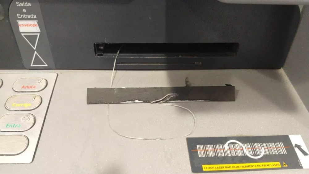 Conforme descrito na denúncia, o autor usava substâncias aderentes e objetos pontiagudos para impedir que os envelopes de depósito inseridos pelos clientes descessem completamente no caixa eletrônico. Após a saída da vítima, ele retornava ao local e retirava os envelopes, ficando com os valores.