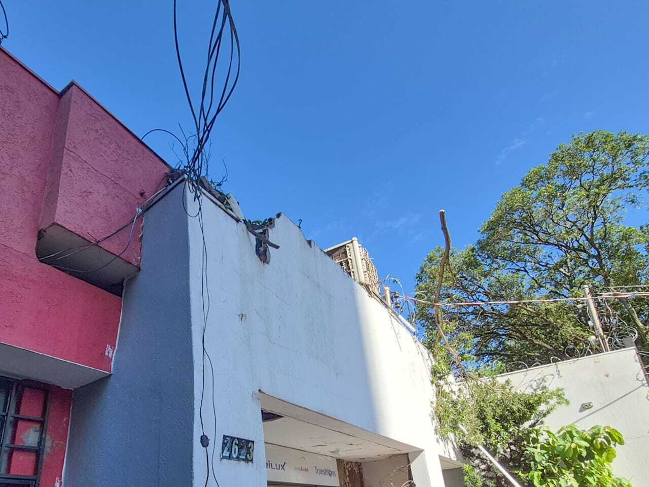 O imóvel atingido teve uma parte do teto danificada pela árvore. O proprietário não foi encontrado para comentar o prejuízo.