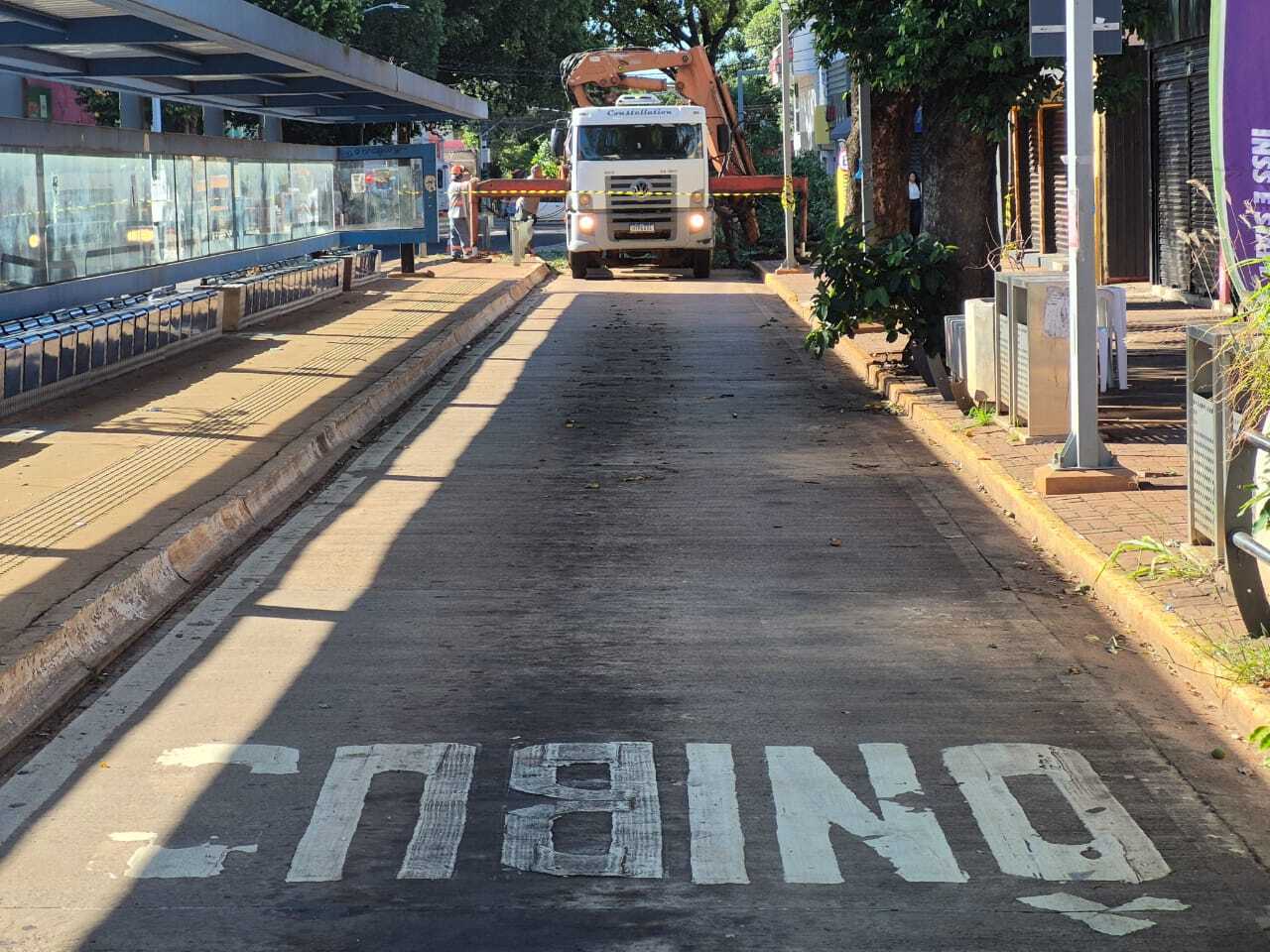 Uma árvore da espécie monguba caiu na Avenida Rui Barbosa, em Campo Grande, durante forte chuva na tarde de terça-feira (6), bloqueando a pista exclusiva para ônibus e atingindo um imóvel comercial desocupado. A remoção da árvore iniciou às 5h30 de quarta-feira (7), com previsão de conclusão às 8h30. O trabalho não pôde ser realizado durante a noite devido à necessidade de desligamento da rede elétrica. O trânsito na região foi afetado, com ônibus operando em rota alternativa.