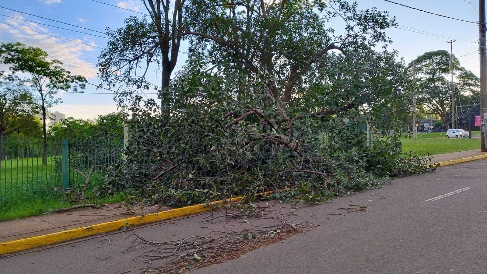 Parque das Nações - Outra árvore caiu em frente ao Parque das Nações Indígenas, na Rua Fernandes Pereira. Ela não bloqueia a pista, apenas a calçada.
