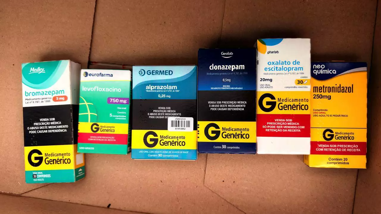 Entre os produtos encontrados estavam analgésicos opioides, calmantes, indutores do sono, estabilizadores de humor, antipsicóticos, antidepressivos e antibióticos, todos com regras específicas de prescrição.