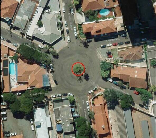 Localização – A tal rotatória dá acesso às ruas Carlos Hugueney, Osvaldo Cruz, José Abrão e Piratininga, no Jardim dos Estados, bairro criado em 1939 na região central de Campo Grande.