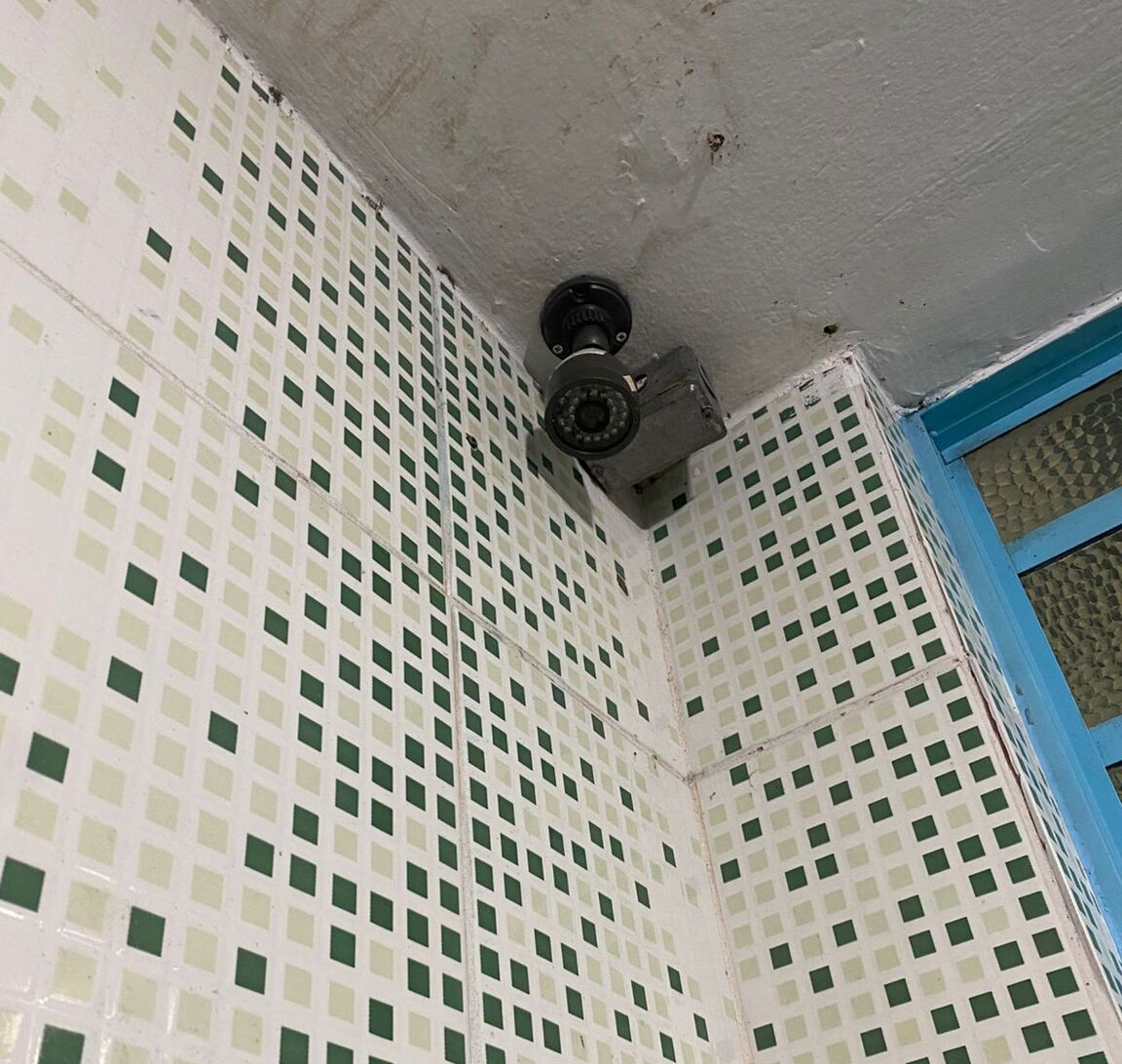 Segundo a denúncia, o equipamento estava no banheiro feminino, virado para as cabines