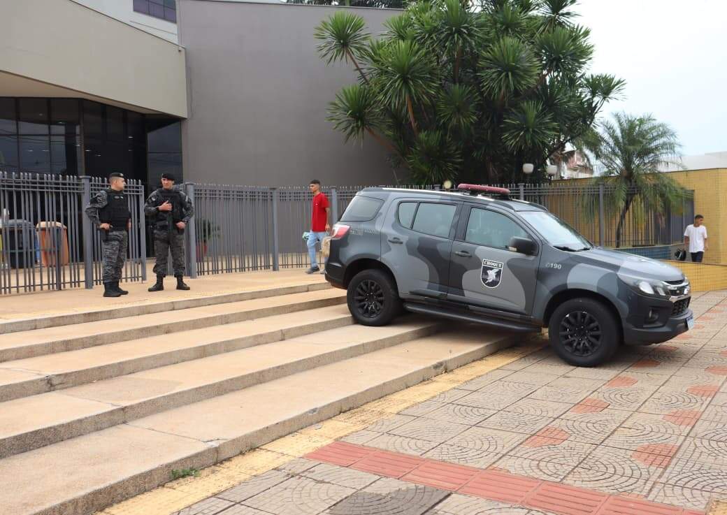 A segurança foi reforçada na porta do Tribunal do Júri de Campo Grande, localizado na Rua da Paz, no Jardim dos Estados, na manhã desta quarta-feira (5). Sentam no banco dos réus: Rafael Mendes de Souza, George Edilton Dantas Gomes, Kleverton Bibiano Apolinário da Silva, Nicollas Inácio Souza da Silva e João Vitor de Souza Mendes. Eles são acusados de matar dois adolescentes por engano no lugar de outro alvo, que sobreviveu ao atentado, no Jardim das Hortênsias, no dia 3 de maio do ano passado.