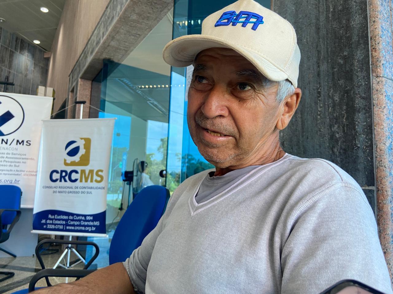 Sidney dando entrevista enquanto aguarda atendimento na Receita Federal (Foto: Mileny Barros)