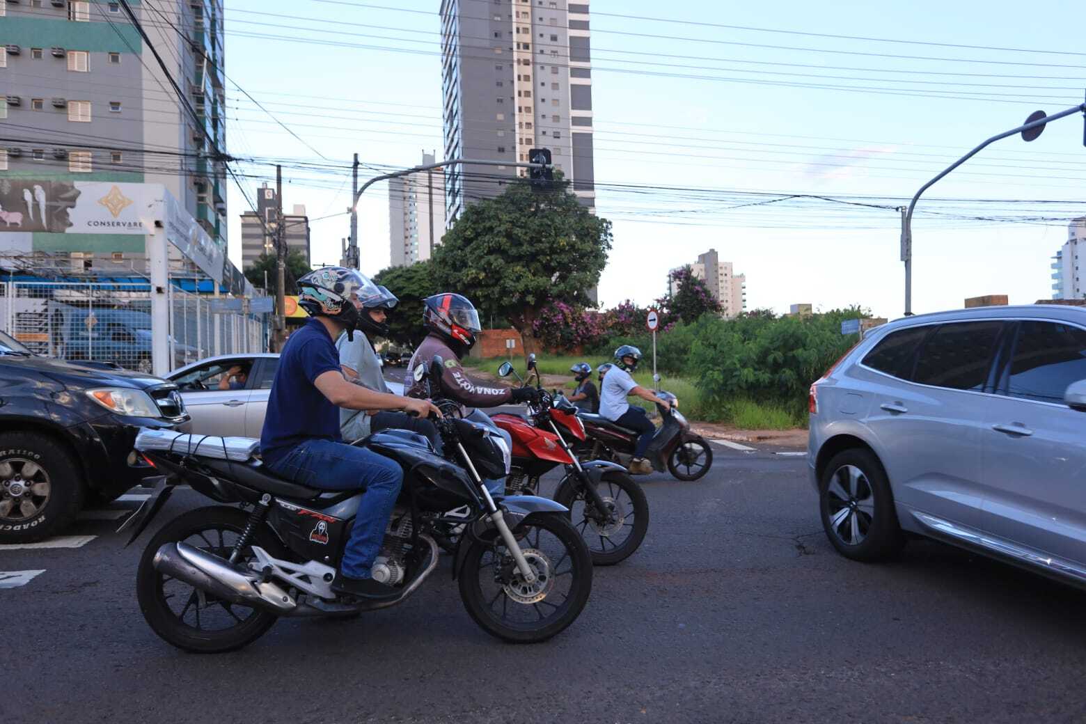 Motos e carros dividindo espaço na Ceará tentando sair do fluxo de veículos (Foto: Paulo Francis)