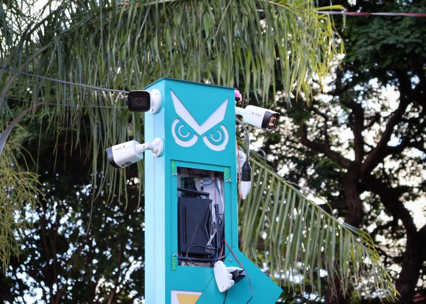 Totem com câmera no Parque de Exposições, em Campo Grande. (Foto: Osmar Veiga)