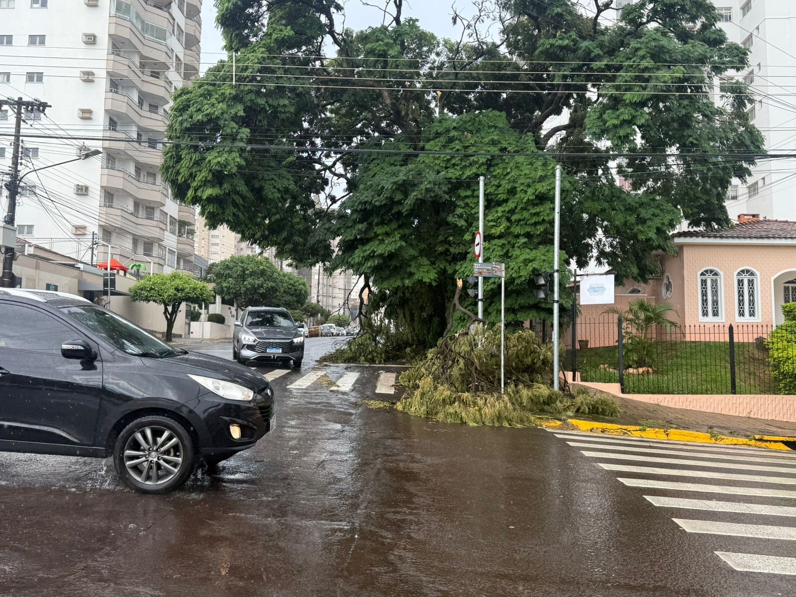 Além da chuva, foram registrados rajadas de vento de até 36 km/h, suficientes para derrubar ganhos grandes de árvores na esquina da José Antônio com a Amazonas. Também aumentou a umidade relativa do ar.
