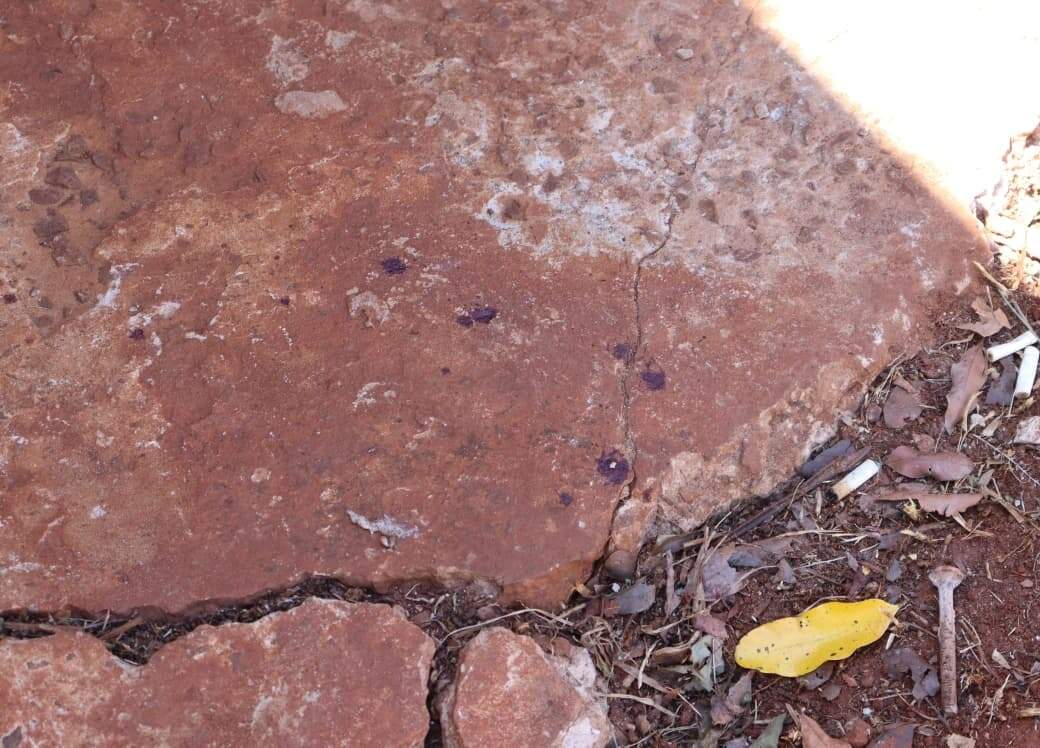 Na calçada onde o crime ocorreu havia marcas de sangue da vítima. Além disso, a parede da residência ficou com sinais do incêndio.