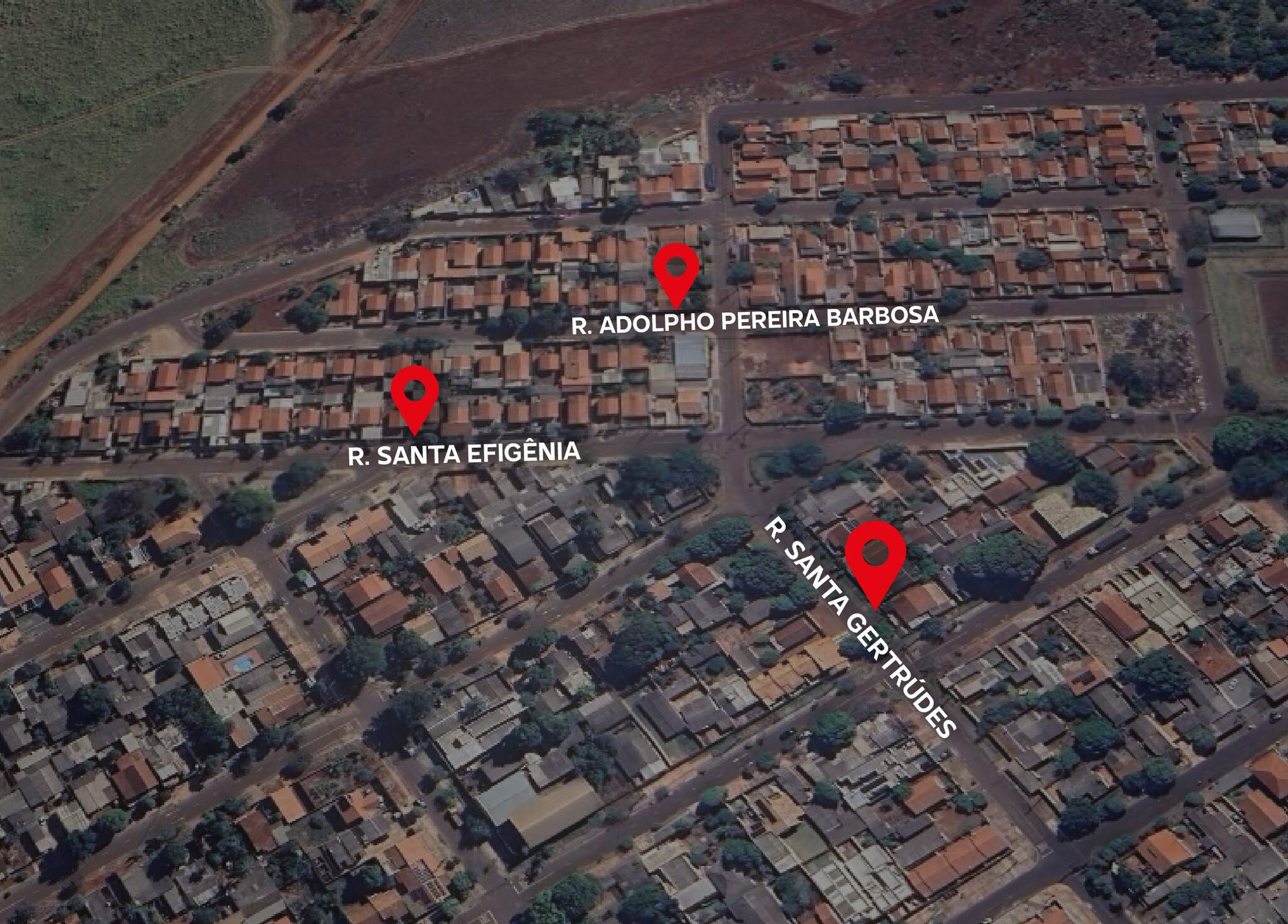 A perícia criminal esteve no bairro e recolheu projéteis que ficaram alojados nas estruturas atingidas. Os disparos estavam distribuídos pelos três endereços verificados pela polícia: as ruas Adolpho Pereira Barbosa, Santa Efigênia e Santa Gertrudes.