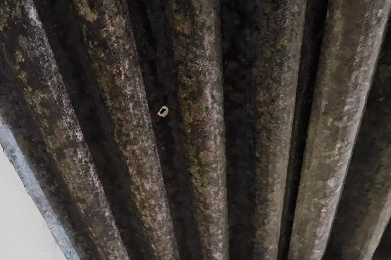 Telhado atingido por tiro na noite de ontem. (Foto: Direto das Ruas)