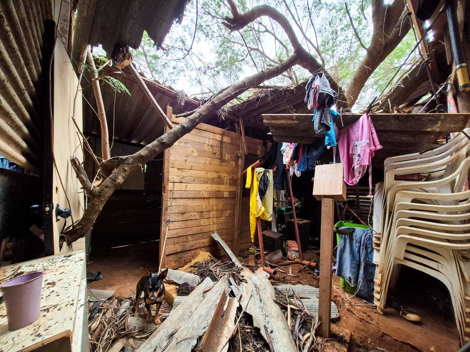 Ventania derruba árvore sobre barraco e comunidade cobra ajuda para retirada