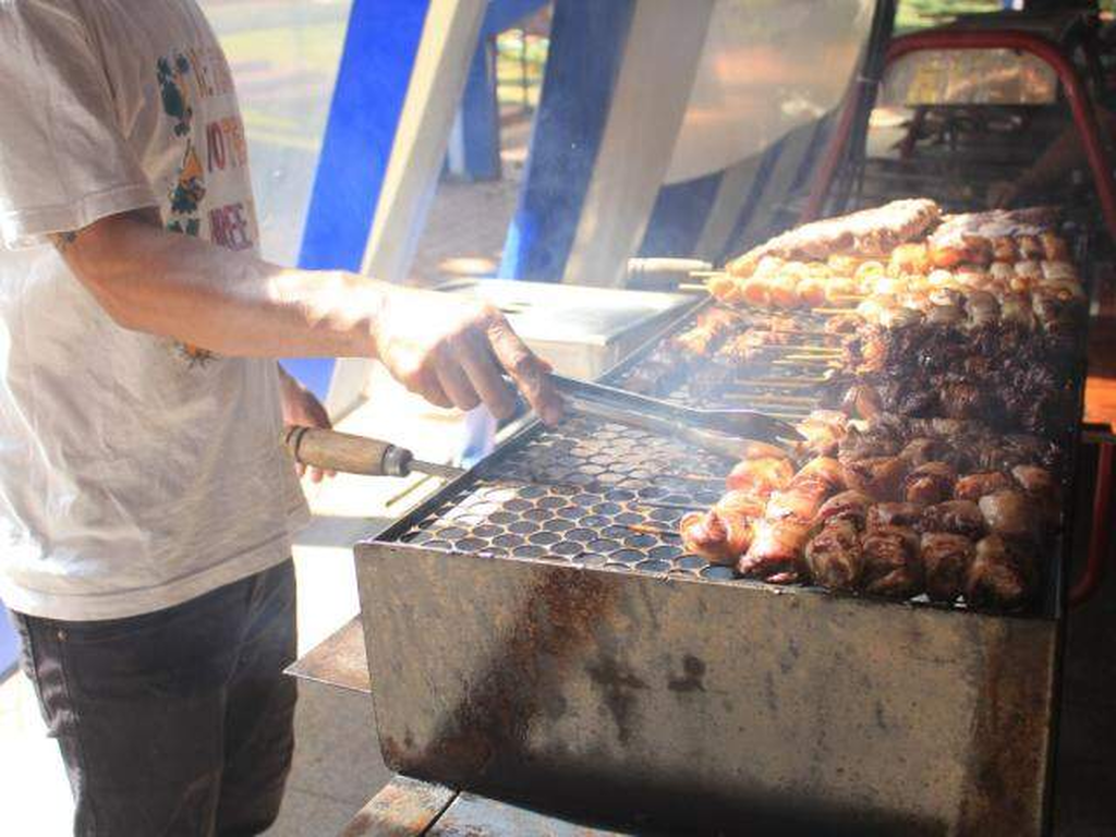 Rapaz manipula carne assada em churrasqueira. (Foto: Arquivo/Campo Grande News)