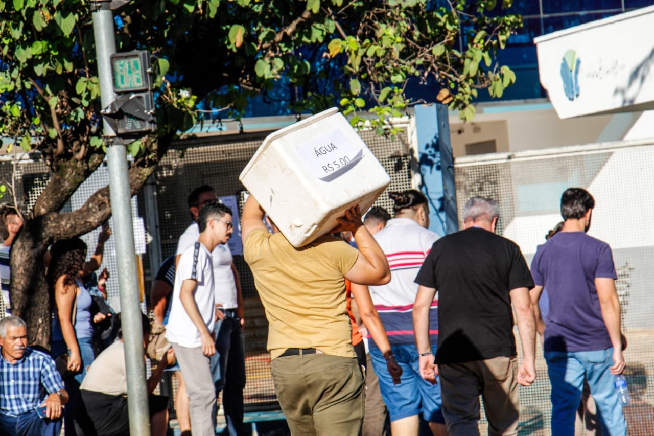 Vendedor de água e candidatos na entrada da Uniderp (Foto: Juliano Almeida)