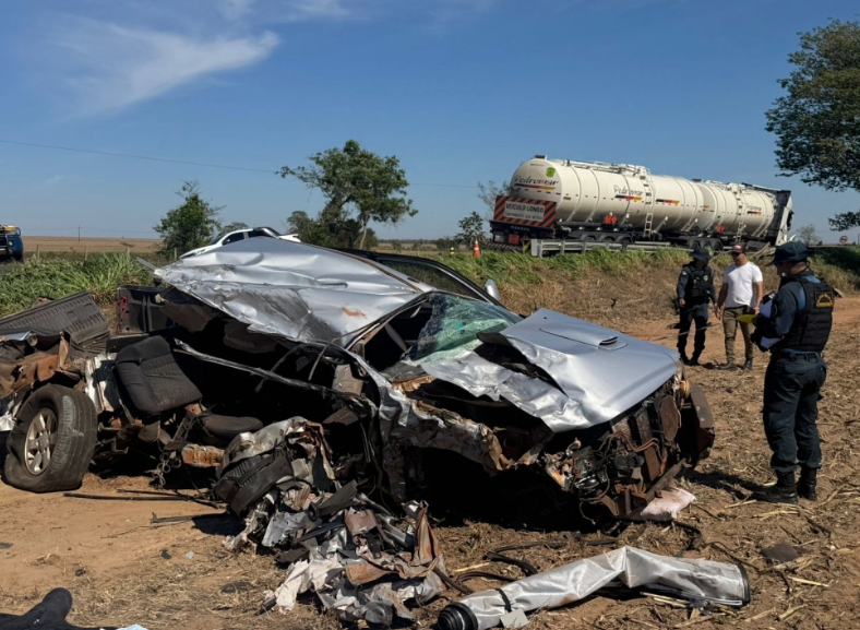 Acidente entre caminhonete L-200 Triton e uma carreta-tanque matou um homem e deixou uma mulher ferida na manhã desta quinta-feira (23), na MS-480, trecho entre Batayporã e Anaurilândia, cidades a 310 km e a 379 km de Campo Grande, quase na divisa com São Paulo.