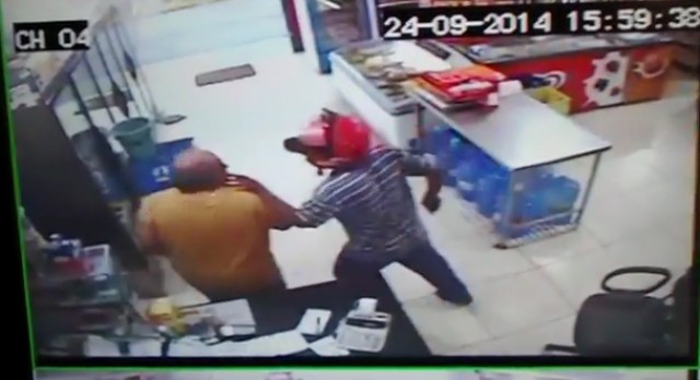 A ação, que ocorreu por volta das 15 horas desta quarta-feira (24), foi registrada pelas câmeras de segurança do local. Segundo o jornal Perfil News, dois homens que ocupavam uma motocicleta Honda Titan preta chegaram na conveniência e estacionaram o veiculo em baixo de uma árvore no cruzamento das vias. Após serem cumprimentados por uma pessoa que passava pelo local, os dois entraram rapidamente na loja, já com arma em punho.