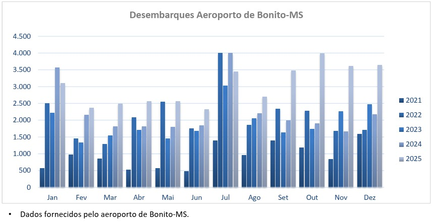 Bonito recebeu 293 mil turistas e bateu recorde nos desembarques aéreos em 2025