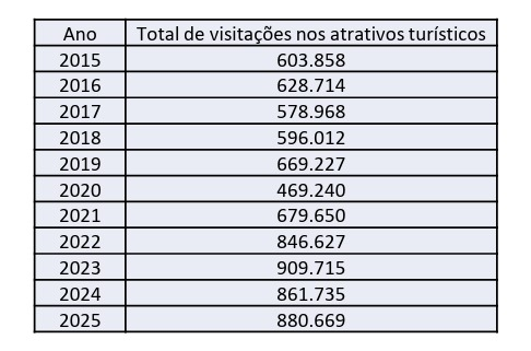 Foram registradas 880.669 visitações em atrativos, mantendo cidade entre os principais destinos de ecoturismo
