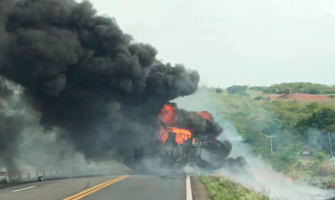 Um caminhão carregado de óleo diesel tombou e pegou fogo na BR-158, entre Paranaíba e Aparecida do Taboado, em Mato Grosso do Sul, causando interdição total da pista na tarde de terça-feira (28). A fumaça densa e escura prejudicou a visibilidade no local. O trânsito foi liberado apenas para moradores da região devido ao risco de explosão. A Polícia Rodoviária Federal prevê a liberação total apenas para quarta-feira (29). Motoristas com destino a São Paulo devem utilizar rota alternativa pela MS-497, acessando o estado por Minas Gerais.
