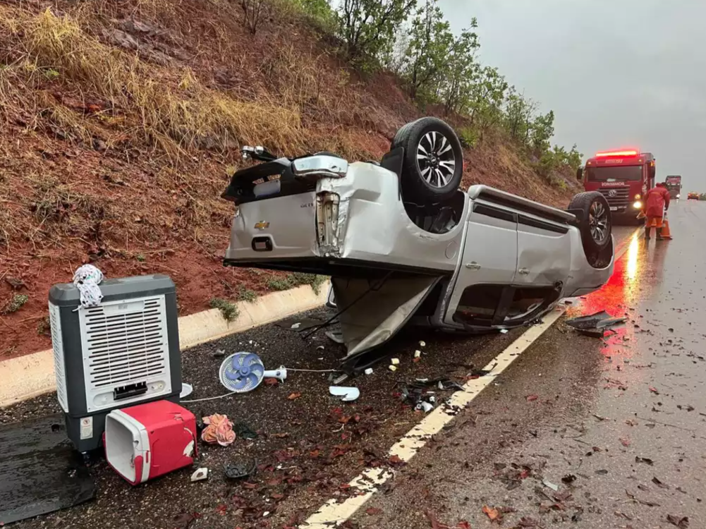 Caminhonete capota várias vezes na BR-359 e deixa três pessoas feridas