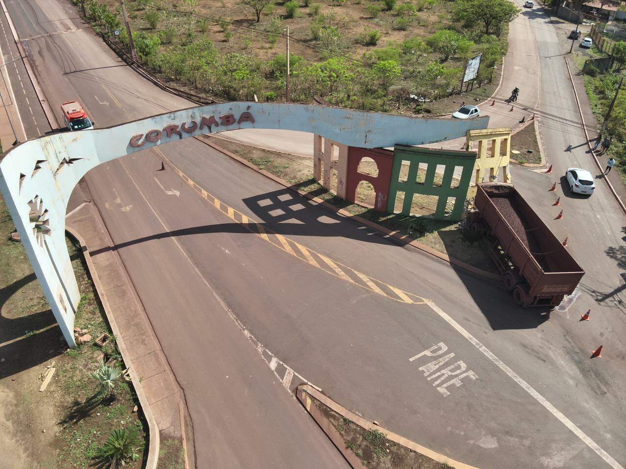 Os condutores e ciclistas devem reduzir a velocidade e redobrar a atenção ao passar pela região. O portal foi construído no final dos anos 90 e fica na entrada de Corumbá, na Avenida Gaturama. O local tem fluxo intenso de carretas.