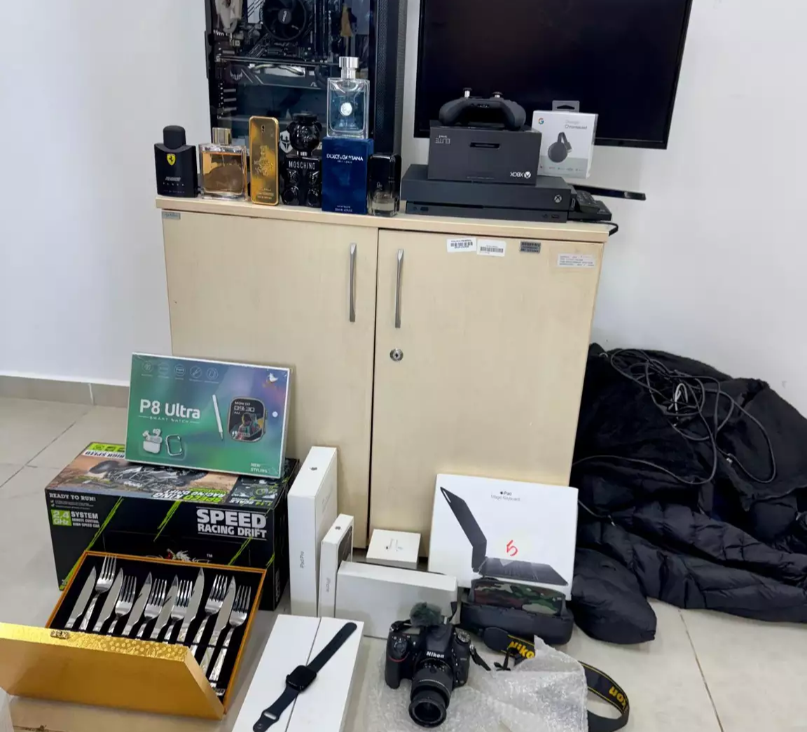 Na lista de produtos encontrados consta computador de alta performance, modelo gamer; monitor e console de videogame Xbox; perfumes das marcas Ferrari, Moschino e Dolce & Gabbana; fones de ouvido e um smartwatch; uma câmera fotográfica DSLR da marca Nikon, acompanhada de lente e strap; talheres de luxo e itens de vestuário, como casacos.