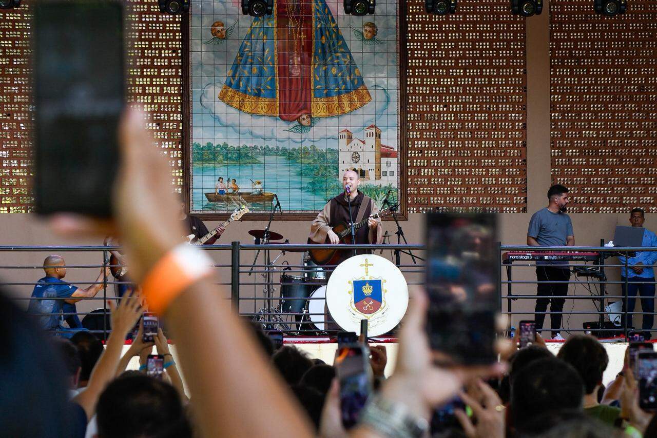 Milhares de fiéis do Brasil e do Paraguai lotam o Santuário Diocesano, no distrito de Vila São Pedro, em Dourados, no sul do Estado, para acompanhar a apresentação de Frei Gilson neste domingo. Considerado uma das figuras religiosas mais populares do país, o frei realiza um show gratuito como parte das comemorações dos 90 anos da Catedral Nossa Senhora da Conceição, padroeira do município.