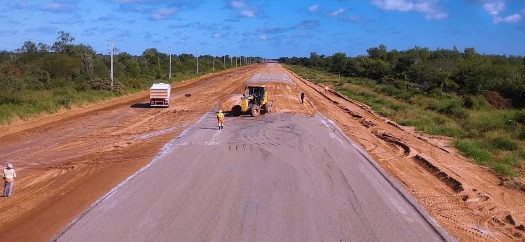 Ao todo, quatro consórcios atuam simultaneamente na pavimentação de 220 quilômetros da PY-15, divididos em lotes de 55 km entre Mariscal Estigarribia e Pozo Hondo. O investimento soma US$ 354 milhões, com financiamento do FONPLATA.