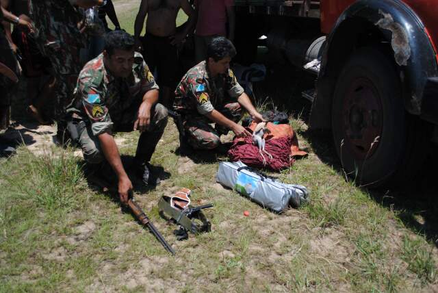 Com eles foram apreendidos um revólver e uma carabina de calibre 22, 97 munições de mesmo calibre e uma ave silvestre tipo arancuã abatida.