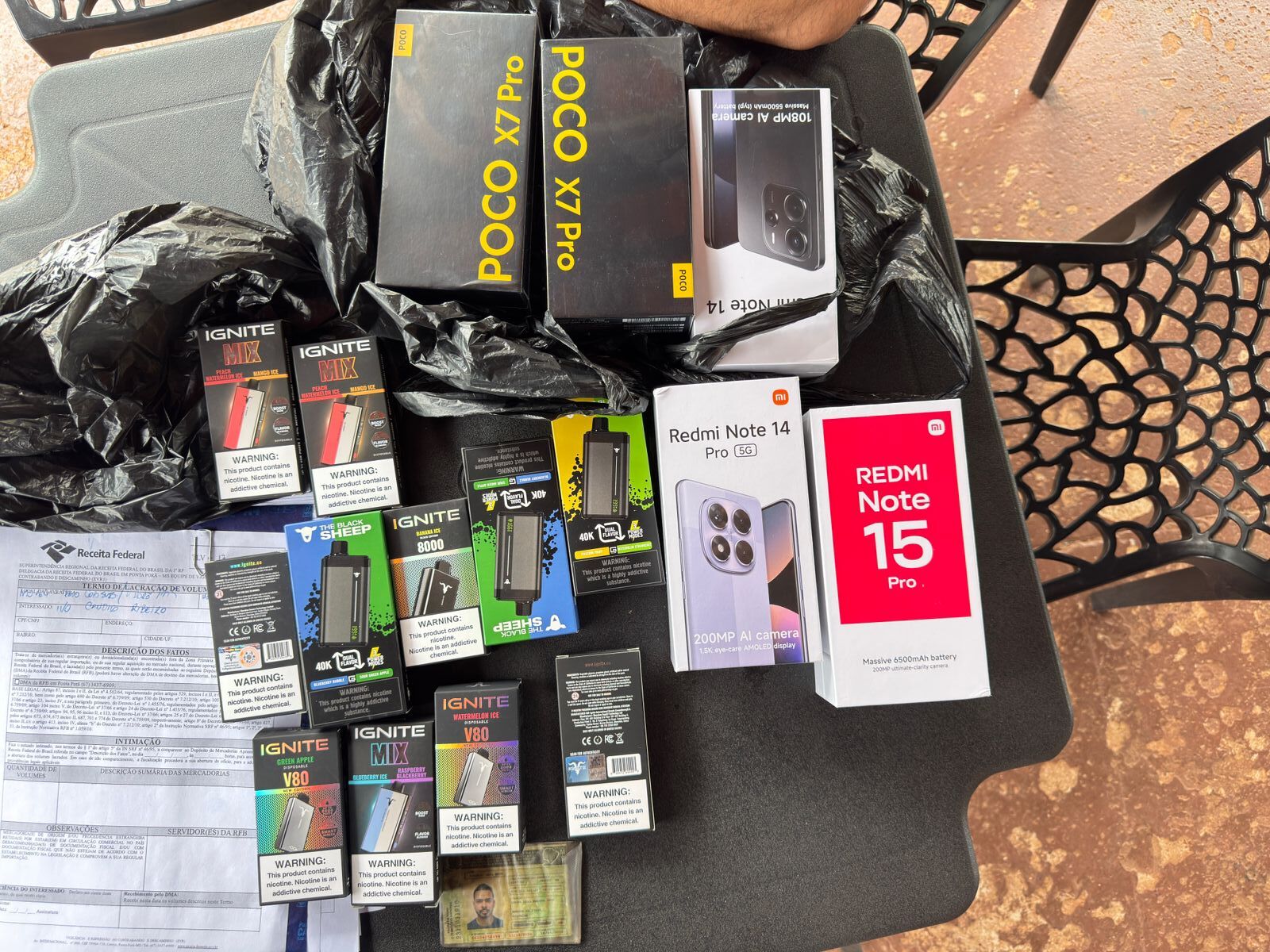 Em nota encaminhada nesta sexta-feira (13), o órgão federal informou que foram apreendidos veículos e mercadorias diversas, incluindo bebidas, celulares, pneus, cigarros comuns e eletrônicos e medicamentos utilizados para emagrecimento, cuja venda está proibida pela Anvisa (Agência Nacional de Vigilância Sanitária).