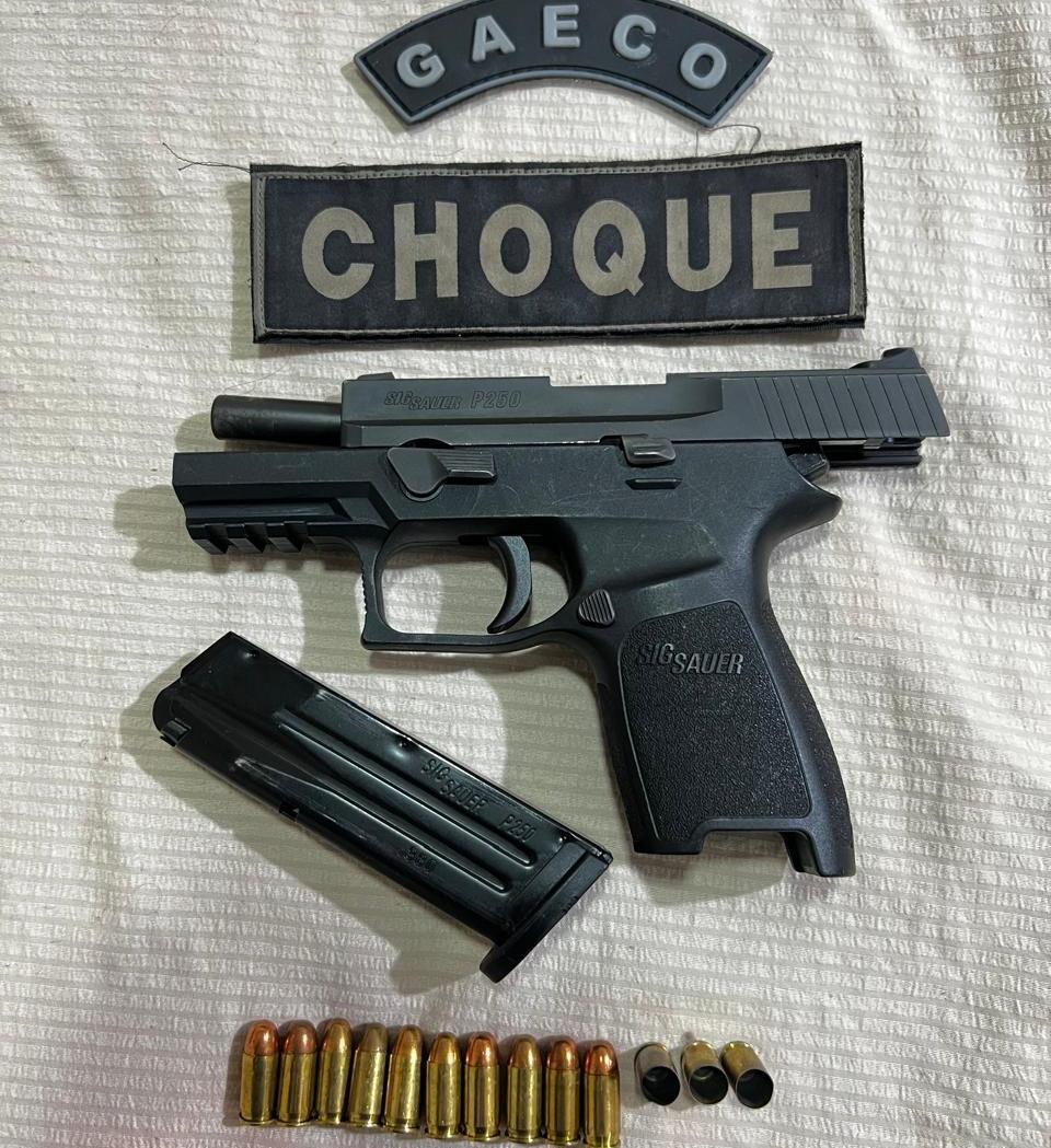Após 50 minutos de negociação, ele se rendeu e saiu da casa na companhia da esposa. Levado para a Polícia Civil, foi autuado em flagrante por posse irregular de arma de uso restrito, tentativa de homicídio contra agente do Estado e desobediência à ordem judicial. Além do dinheiro e da pistola, os policiais apreenderam 12 munições calibre 380 intactas, 3 cartuchos deflagrados e um celular, entregues ao Gaeco.