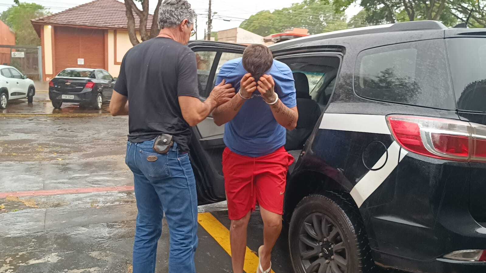 Eduardo Brites quando chegava à delegacia após ser preso em Fátima do Sul (Foto: Osvaldo Duarte)