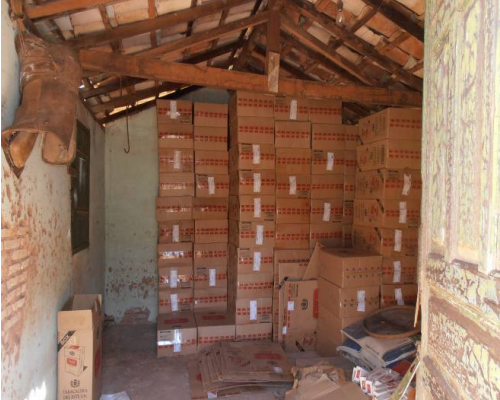 Ao todo, 55,5 mil maços de cigarros foram apreendidos no fim da tarde de ontem, próximo a Aparecida do Taboado, a 481 km de Campo Grande, pela PMA (Polícia Militar Ambiental).