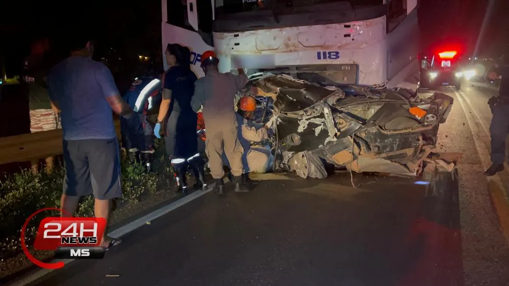 Impacto destruiu carro perto de posto na BR-262; veículo de carga seguia no sentido de Campo Grande