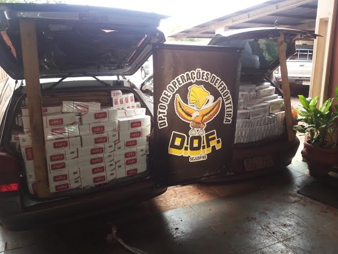 Uma denúncia anônima de veículos escondidos na Vila Carumbe, em Itaporã, a 227 quilômetros da Capital, levou a Polícia a uma rua sem saída, onde foram encontrados um Palio e um Parati. Os ocupantes, de 37 e 25 anos, permitiram a fiscalização e 2.650 pacotes de cigarro estavam no porta malas.