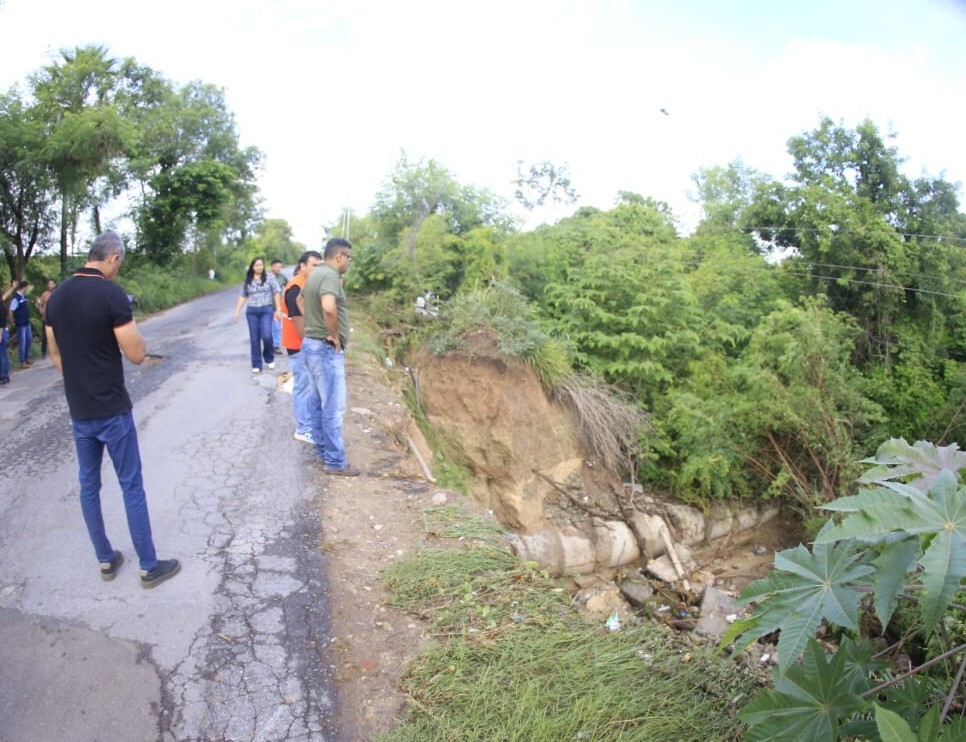 Na manhã desta quarta-feira, prefeito também esteve no trecho acompanhado por equipe técnica para vistoriar os danos. Segundo ele, a enxurrada levou grande parte do barranco e quase atingiu a pista. “A situação exige uma medida enérgica para evitar possíveis tragédias”, afirmou.