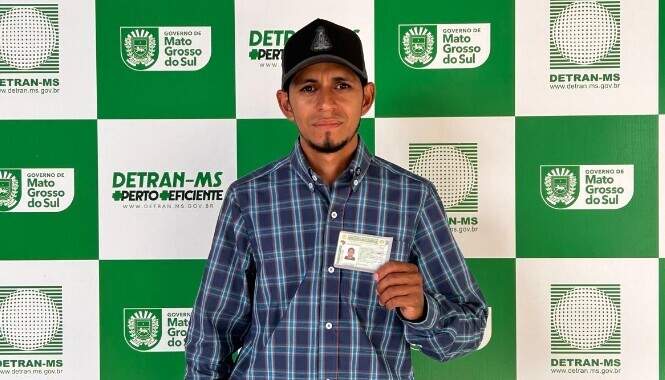 O trabalhador rural Bruno Amorim Gonçalo, de 29 anos, é o primeiro condutor habilitado pelo novo modelo da CNH (Carteira Nacional de Habilitação) em Mato Grosso do Sul. Ele acaba de receber a permissão provisória para dirigir, com validade de um ano.