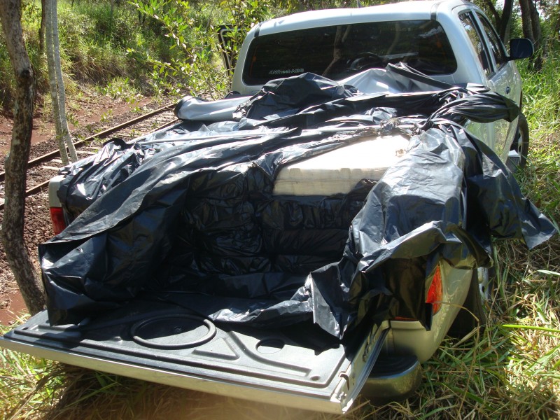 Ao verificar que seria abordado, o condutor da caminhonete com placas de São Paulo adentrou com o veículo em um matagal ao lado da rodovia, onde o abandonou e fugiu.